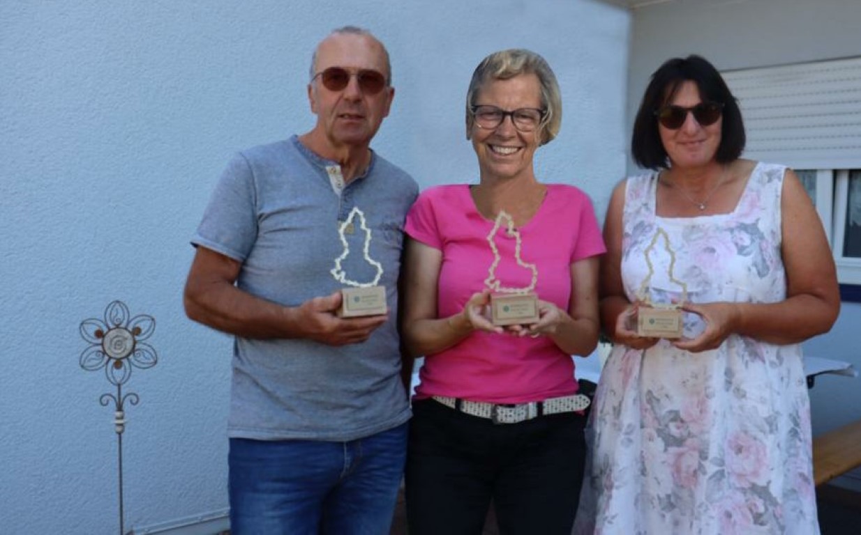 Siegerehrung der 3 ersten vom LAC Team beim Stadtradeln: Elke, Sigrid und Helmut